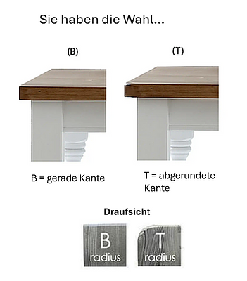 Material Platte: je nach Auswahl Kiefer massiv (in 3 oder 4cm), Buche massiv (in 3cm) oder Eiche massiv (in 3cm)