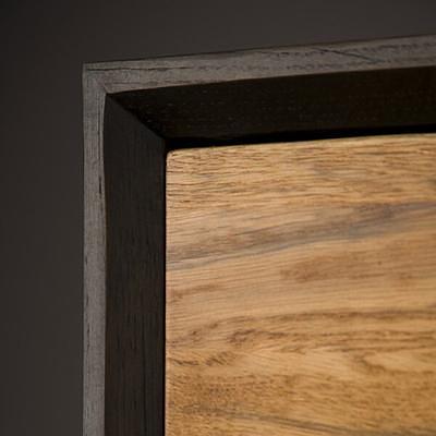 Bresso ist ein markantes Erscheinungsbild unter den vielen industriellen Wohnprogrammen. Die Kollektion ist innovativ und zeichnet sich durch das einzigartige Layout, die Türen aus massiver Eiche und das Retro-Bein aus. Die Türen und Schubladen schließen mit einem Soft-Close-System. Die Farbkombination, bestehend aus zwei warmen Brauntönen, verleiht dem Möbel seinen Charme.