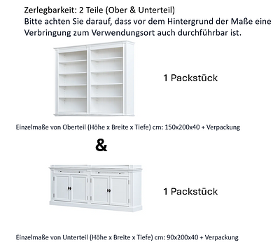 Einzelmaße von Unterteil (hxbxt) cm: 90x200x40cm