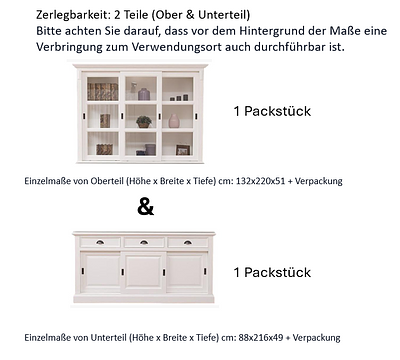 Zerlegbar: 2 Teile (Ober & Unterteil) (Bitte achten Sie darauf, dass vor dem Hintergrund der Maße eine Verbringung zum Verwendungsort auch durchführbar ist)